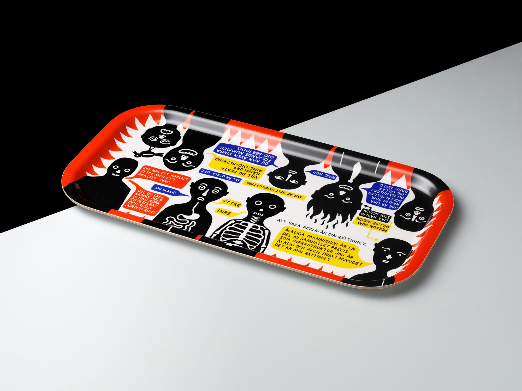 Bricka med tema ”äckliga människor”. Precis som infrastruktur är äckliga människor en del av samhället. Brickan är tillverkad i Nybro.